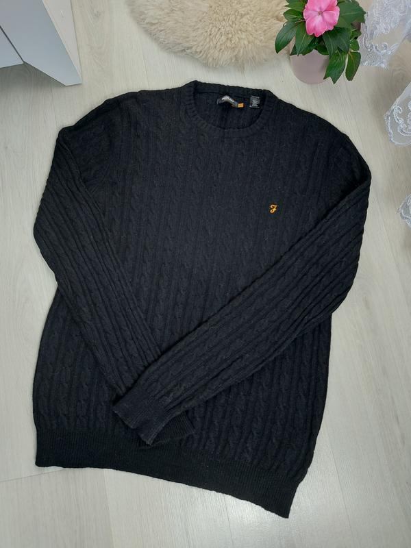 Теплая мужская кофта/ джемпер от известного немецкого бренда Farah. Состояние: очень красивое, без нюансов. Цвет: черный Состав: 45% шерсть, 20% альпака, 35% полиамид Указан размер: L Плечи:50см ПОГ:57см Рукав:70см Длина:73см