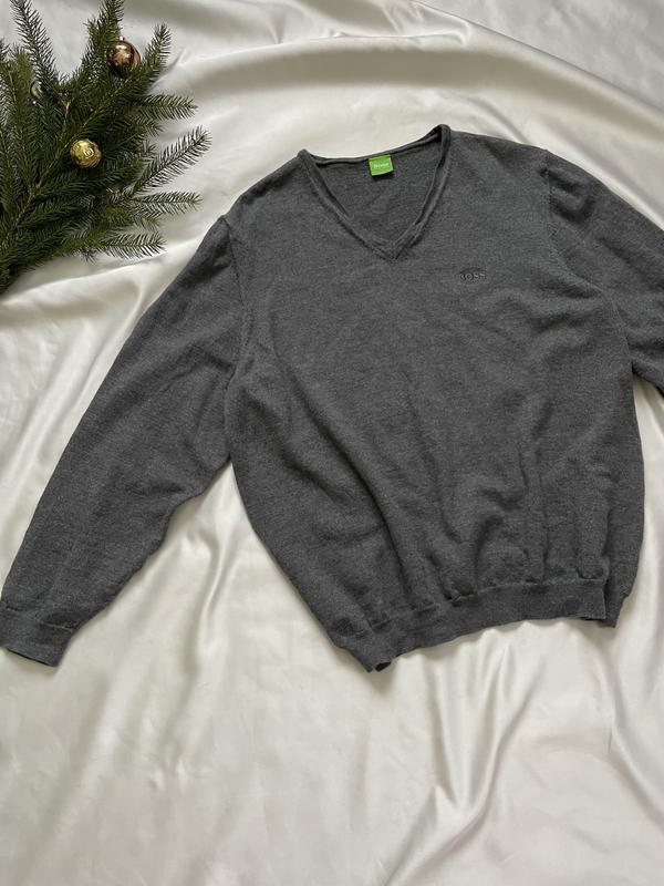 Мужской шерстяной джемпер hugo boss, серый свитер пуловер реглан