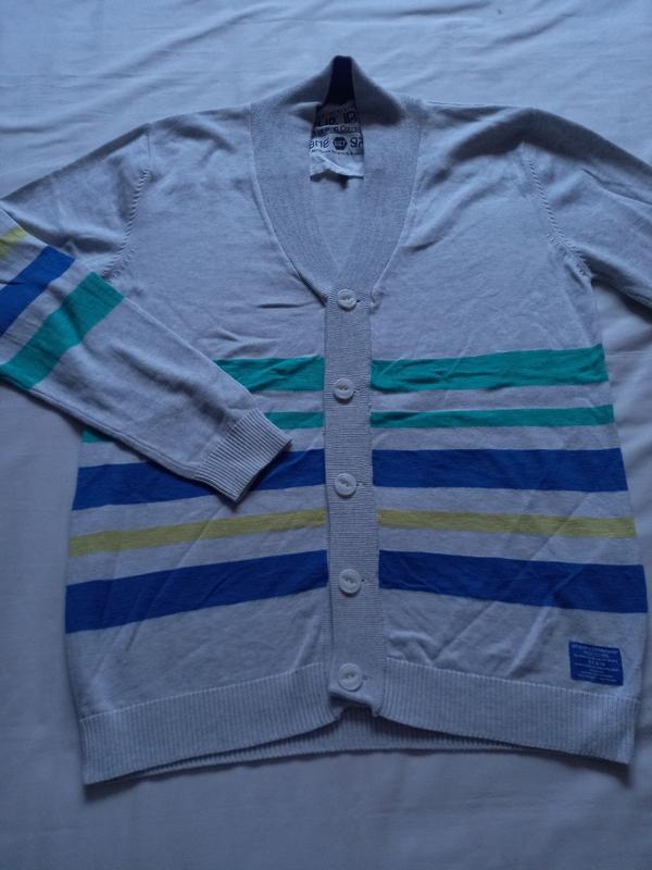 Джемпер мужской ☆размера L ☆в идеальном состоянии ☆приятный к телу ☆на пуговицах ☆очень комфортный и удобный ☆имеет воротник ☆хорошо тянется ☆имеет резинки внизу и на рукавах ☆100% бавовна ☆сине-серо-желтого цвета ☆необычный ☆с нюансов незаметные пятна на рукаве За дополнительными фото или замерами пишите в личные