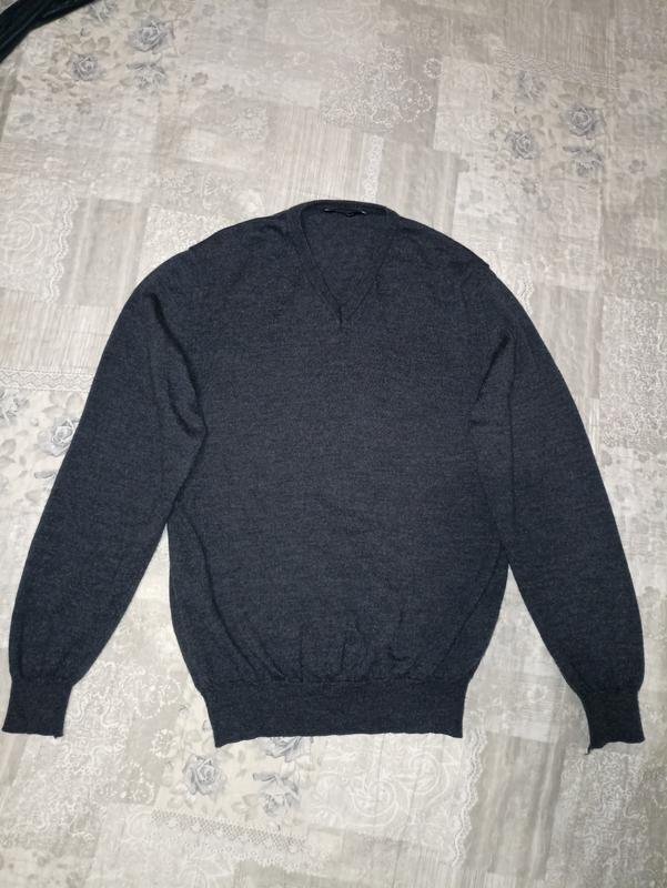 джемпер Sevensigns из 100% мериносовой шерсти, серый, мериносовая шерсть особенная, так как обладает рядом уникальных свойств: влагоотводитель: может впитывать и выделять влагу, сохраняя сухость и комфорт; устойчивость к запахам: не стоит запахи, как другие ткани; терморегуляция: может согревать в холод и охладить в жару; гипоаллергенность: с меньшей вероятностью вызывает раздражение кожи или аллергию. размер M, плечи 45см, грудь 53см, длина 67см, длина рукава 66см в состоянии нового, без признаков использования
