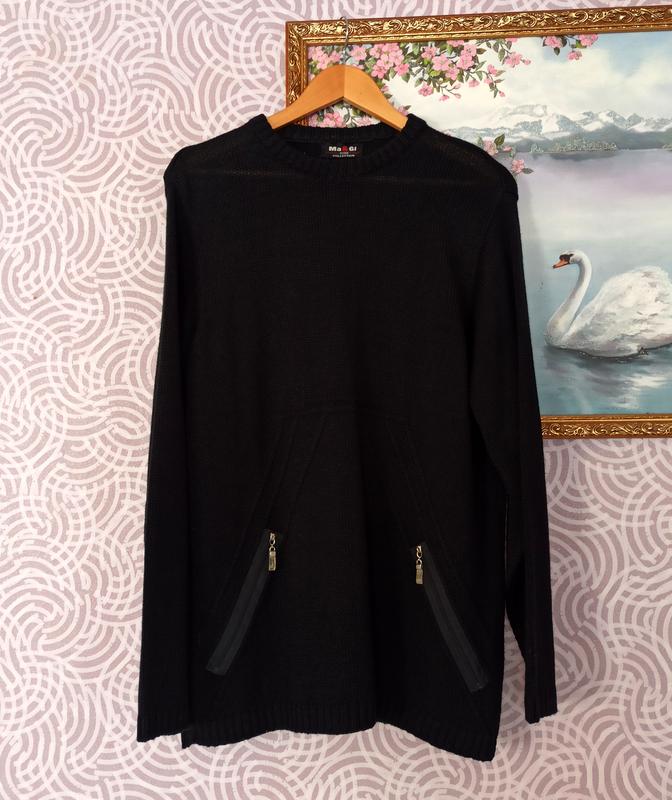 Чёрный джемпер, универсальная базовая модель, приятный, комфортный, отличное качество. Состояние - идеальное. Длина по спинке - 73 ПО под рукавами 56-58