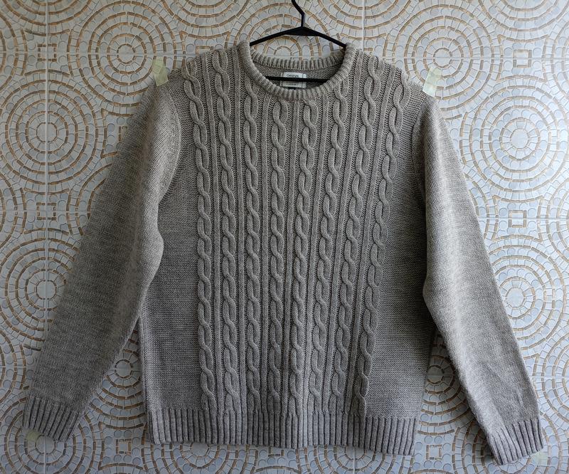 Джемпер мужской серого цвета, теплый. Бренд George, торгова марка Casual. Виготовлено у Бангладеш. Состав идеальный: 85% акрил; 15% шерсть. Вязкая большая с красивым рисунком спереди. Манжеты рукава и низ джемпера - вязкая резинка. Размер XL (52-54). Замеры (см): длина 75; полуобхват груди под проймой рукава (ширина) 61; длина рукава 71; плечи 49. Стан идеален, почти новый. Надевался редко, только в гости. Отправлю по любой почте.