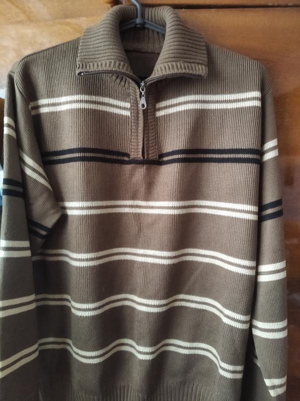 Отличное состояние, на молнии у горловины,воротник толстый на резинке, на рукавах и по низу трикотажная резинка. Размер 48-50, плечи 50,Пог 62, рукав 66 длинна 70. Ткань : 50 % Коттон, 50% полиэстер.