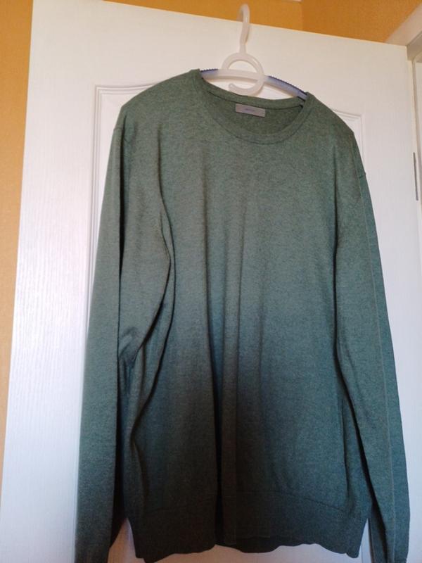 цвет красивый насыщенный хаки с зеленым.Ближнее к реалии фото 2.Колир сложный современный. Размер XXL.Состав 55% коттон. шерсть5% полиэстер 40%.Мягкий Трикотаж меланжевый. Сплетение нитей разного оттенка хаки и зеленоватого.Замеры ПОГ61 см..Длина 74см. Ширина плеч 48см.Длина рукава 70см.Стан идеален. Бумажный кружок на этикетке.Стан новой вещи