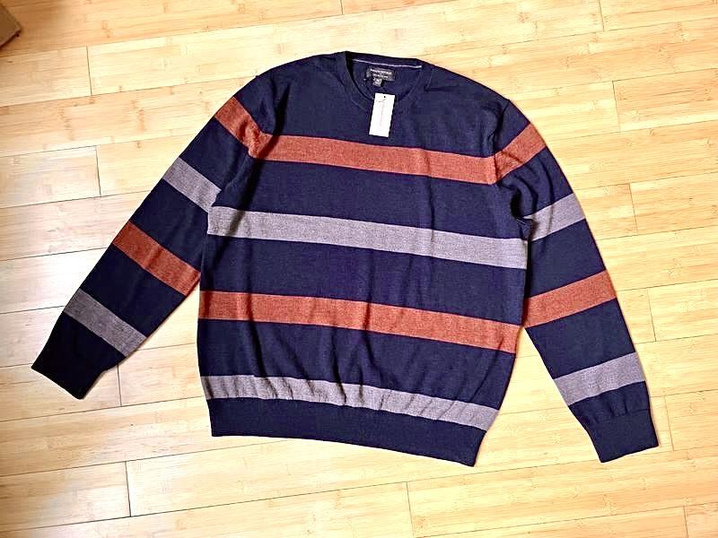 Теплый и легкий темно-синий джемпер в полоску, мягкий и приятный, не кусается, отличнейшего качества.Замеры смотрите на фото.