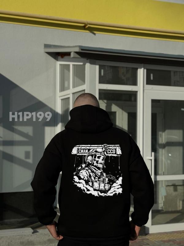 Худи трехнитка начес черный h1p199 ▪️Размеры: S, M, L, XL, XXL ▪️Карман кенгуру ▪️Принт: качественная печать