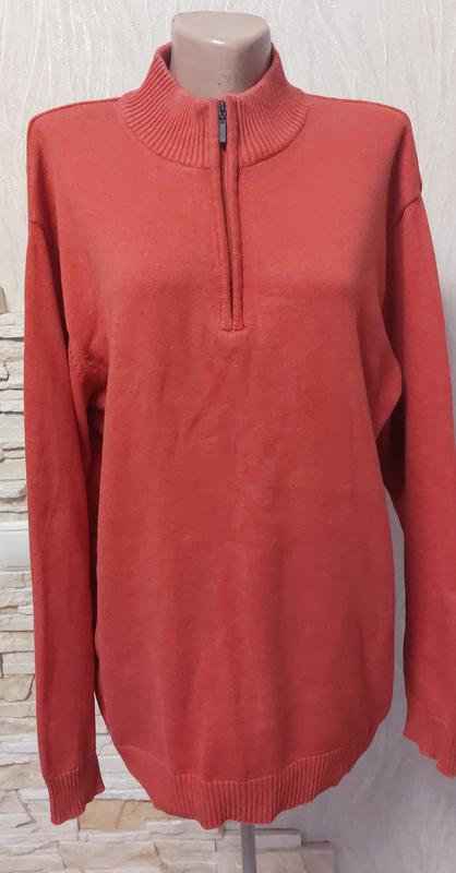 Мужской свитер в идеальном состоянии кораллового, но не яркого цвета.Горловина на молнии, мягкий, красиво смотрится на фигуре.Состав ткани срезан. Джемпер без нюансов длиж75см ног62 рукав 63см плечи 54