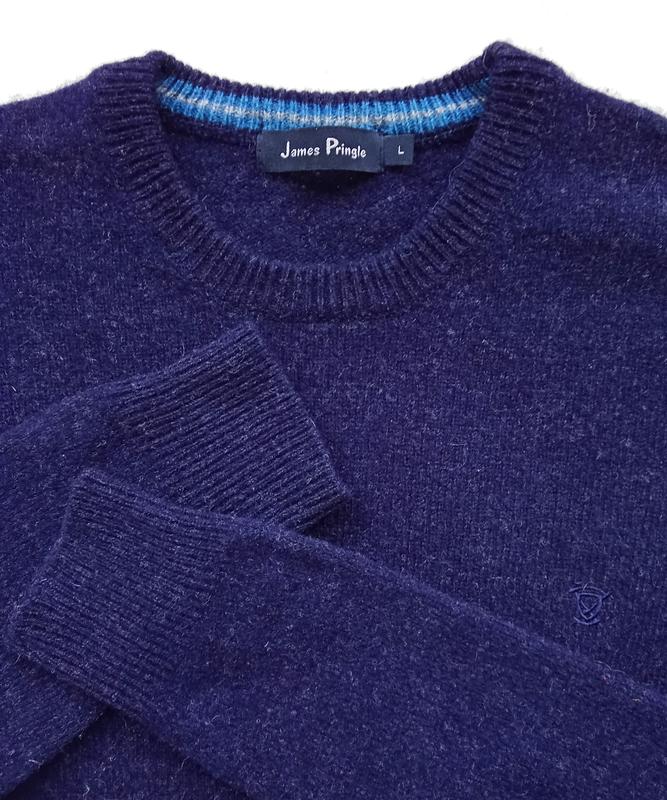 Отличного качества фирменный джемпер из 100% шерсти. Цвет темно-синий, сдержанный благородный оттенок. Полотно средней толщины, однородное, плотное, но пластичное. По бирке размер 48. Параметры в см.: ПОГ 56, длина 68, в плечах и по низу ширина 44 без растяжения, рукав 65 от втачного шва и 79 от шеи. Состояние отличное, без дефектов.