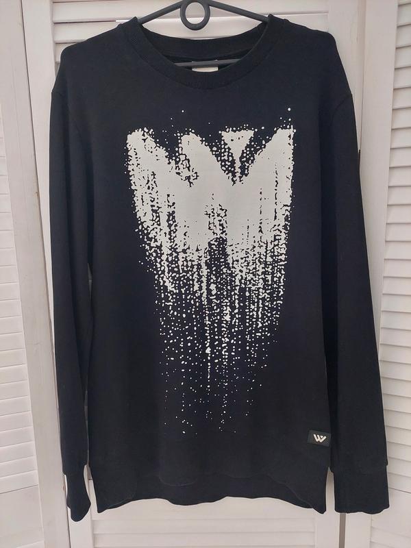 черный котоновый джемпер pure white отличео подойдет подростку или молодому парню рисунок пено резина. длина 78 плечи 50 рукав 67 ог 55