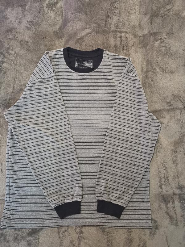 Реглан новый, без бирки. Нелепая фирма TCM Tchibo. Вещи этой марки очень хорошего качества. Цвет серый, полоски черные. На рукавах манжеты. По наборке размер L, но на мой взгляд очень большемерит. Лучше ориентироваться по замерам. Общая длина 71 см, полухват груди 60 см, ширина по плечам 54 см, длина рукава от плеча 60 см.