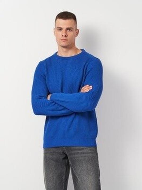 Джемпер Uniqlo 100% шерсть, мягкая, не колется, размер L, голубой тёмный, пог 56 длина 69 рукав 68 плечи 40