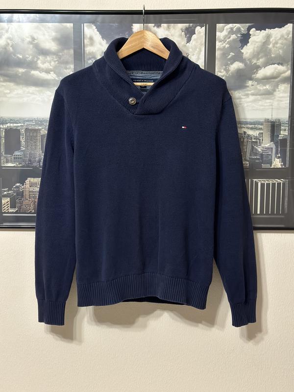 Мужской джемпер / свитер / кофта с воротником Tommy Hilfiger размер L в отличном состоянии. Без пятен, повреждений, состояние хорошее. Плотная ткань, 100% коттон. На фото у меня рост 180 см и вес 80 кг. Внешняя длина рукава: 63 см. Ширина плеч: 47 см. Ширина между подмышками: 53 см. Длина по спине (в воротник): 63 см. Ширина у самому низу: 43см (але знизу резинка).