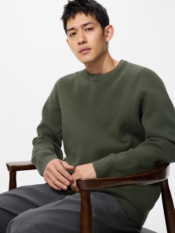 Склад: 39% бавовна, 34% поліестер - перероблене волокно, 27% віскоза UNIQLO Washable Milano Ribbed Crew Neck Jumper еластичний трикотаж ребристий комір