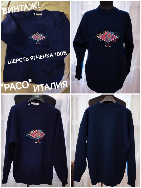 ЕВРОСТОК! СОСТОЯНИЕ 9/10 Добротный Винтажный Джемпер из 100% шерсти Ягненка от известного Итальянского Люксового бренда "PACO". Сохранность Супер! Очень Тёплый и максимально Комфортный! Удобная свободная модель с высокой проймой, ничего не будет сковывать движения! Идеальный вариант для холодного времени года. Шерсть Прочная, Мягкая и приятная к телу. Не Кусается!При стирке Не Линяет! Вязка Плотная "непродуваемая"и довольно толстенькая, хорошо держит форму. Красивый Немаркий цвет,Темно Синий с лёгким фиолетовым подтоном,(фото 1 и 2 соответствуют максимально). Очень качественная яркая нашивка логотипа бренда. Модель Унисекс, Подойдёт и Мальчикам и Девочкам! Вещь чистая, отпарена,Готова к Носке! СОСТОЯНИЕ БЛИЗКО К ИДЕАЛЬНОМУ! Никаких Пятен, потёртостей и катышек . Цвет насыщенный! Резинки плотные,не растянуты . Было две маленькие зацепочки, одна на правой манжете и совсем микроскопическая по низу резинки,скорее всего полученные при транспортировке . Всё аккуратненько зашила,со стороны не видно, внешний вид не портит. С Удовольствием отвечу на все Ваши вопросы, Вышлю дополнительные фото, если нужно с сантиметром, Задавайте Пожалуйста все вопросы до Покупки, Возврат не Предусмотрен! Смотрите другие мои объявления, Много Красивых Качественных вещей, При Покупке нескольких вещей ГАРАНТИРОВАННАЯ СКИДКА 😊 ОТПРАВКА ПОСЛЕ ОПЛАТЫ НА КАРТУ! УкрПочтой каждый день кроме воскресенья, Новой если успеваю в этот же день или на следующий! Замеры в спокойном лежачем состоянии: Плечо+рукав 72 (плечо немного спущенно) Пройма ~27-28 ширина между подмышек 58 ширина резинки по низу 48+ длина по спинке 69
