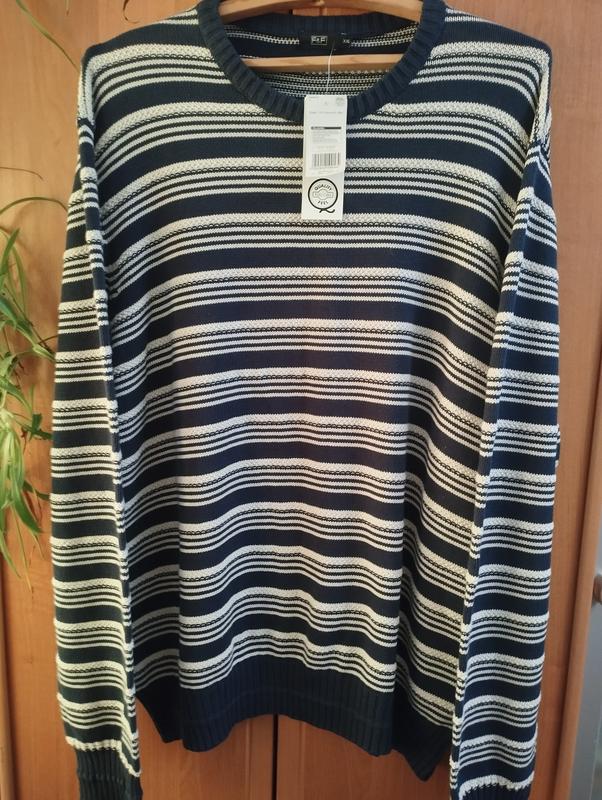 Новый сток. Мужской фирменный свитер темно синий с белыми полосками. 100% коттон, приятный на ощупь. Замеры на последнем фото