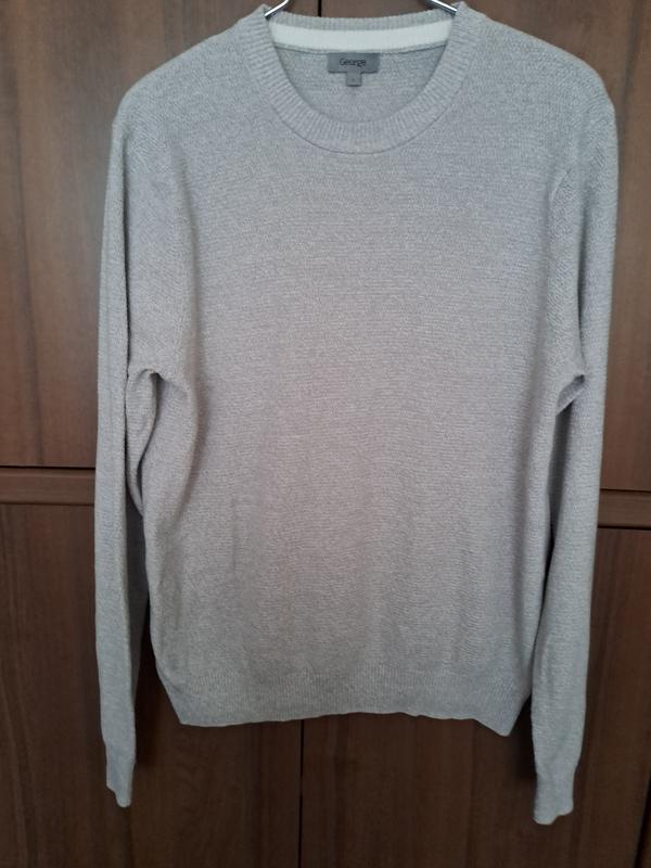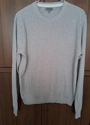 Джемпер мужской светло- серого цвета с бежевым подтоном. Базовая модель с круглым вырезом горловины и длинными рукавами. Вязка машинная напоминает мелкий букле. Размер от производителя- L. Пог.- 56, длина- 73, длина рукава от горловины- 77 см. 100% качественный коттон. Вещь новая, с бумажной контролькой (см. последнее фото).