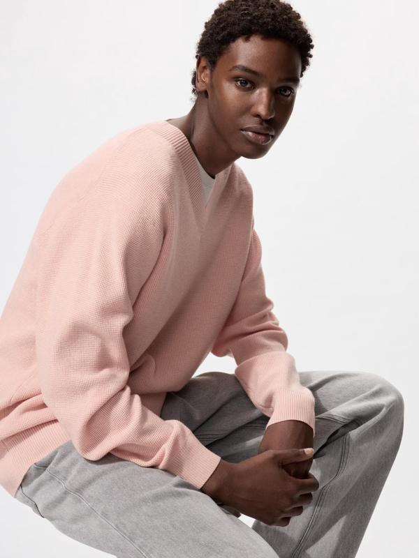 Состав: 51% акрил, 27% полиэстер, 22% хлопок Waffle Sweater | V-Neck умеренно толстый трикотаж высокой плотности с выраженной текстурой неглубокий V-образный вырез идеально подходит для повседневного стиля универсальный дизайн можно сочетать с рубашкой или носить соло не прозорий обычного кроя унисекс