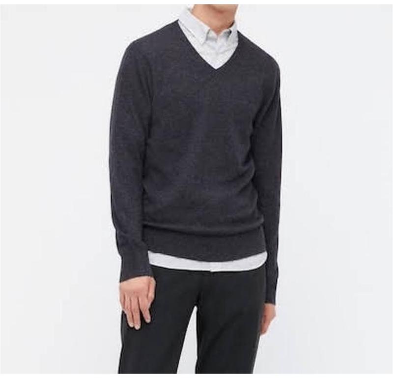 Джемпер из тончайшей шерсти Uniqlo. Размер L. Состояние новой вещи. Цвет графит. пог 55 длина 72 ширина в плечах 43 плечо 14 рукав 70 (0305)