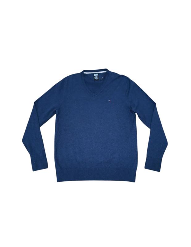 Джемпер мужской, синего цвета, 82% хлопок, 15% нейлон, 3% эластан. Есть вышитый логотип. Длина - 71 см, полуобхват под руками - 52 см, длина рукава - 68 см, ширина плеч - 43 см.