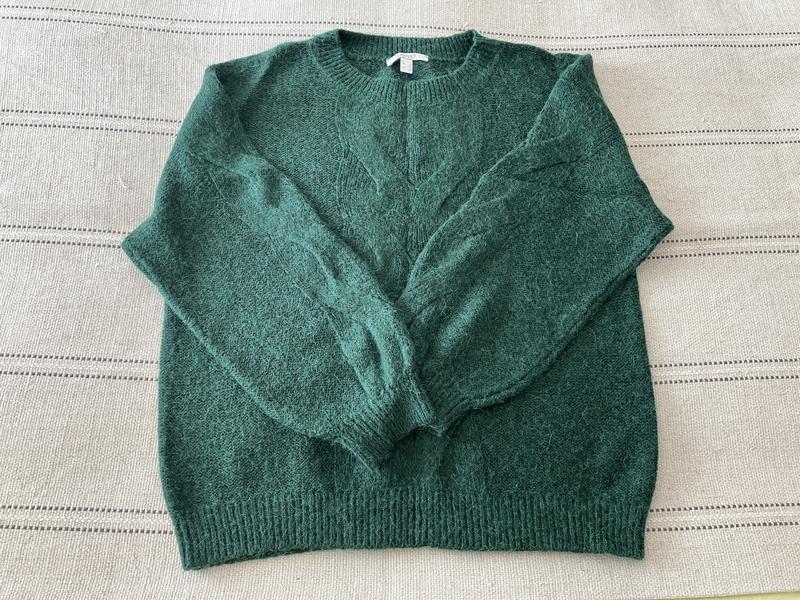 Размер L (европ.), цвет темно-зеленый Состав: 42% акрил, 20% полиамид 20% шерсть, 10% альпака Теплый, легкий Замеры: ширина плеч 60см, полуобхват груди 59см, длина рукава 51см, длина изделия 62см,