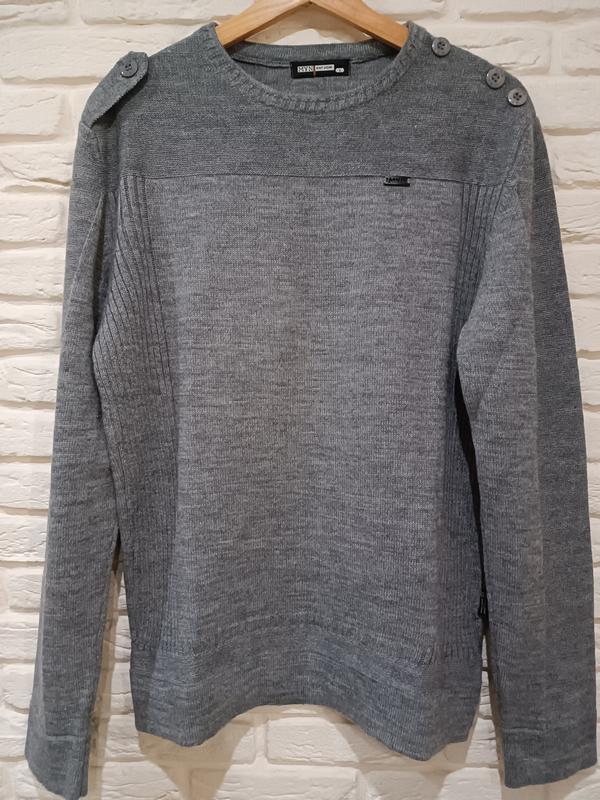 Мужской джемпер, размер L, лучше на М. Ориентируйтесь по замерам Замеры: Плечи 44см. ПОГ 52см. Длина рукава 64см. Общая длина 66см.