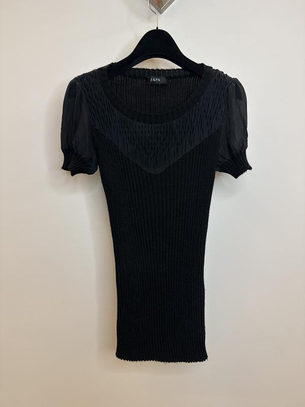 Вовняний джемпер з коротким рукавом zapa. Топ zapa з вовни та шовковими вставками. Має круглий виріз та вʼязані резинки на рукавах. Текстура рубчик. Дуже гарно тягнеться. Zapa- дорогий французький бренд рівнем з maje, Sandro, max mara, Zadig & Voltaire, Isabel Marant. Ціни від 300€ на подібні речі • Французький бренд, орієнтований на жінок («maison française»), одяг та аксесуари, з акцентом на елегантність, якісні матеріали та сучасний, трохи «рок-шик» стиль. Підписуйтесь.Дивіться мій профіль з рідкісними та унікальними виробами. Тільки преміум тканини і люксові бренди.