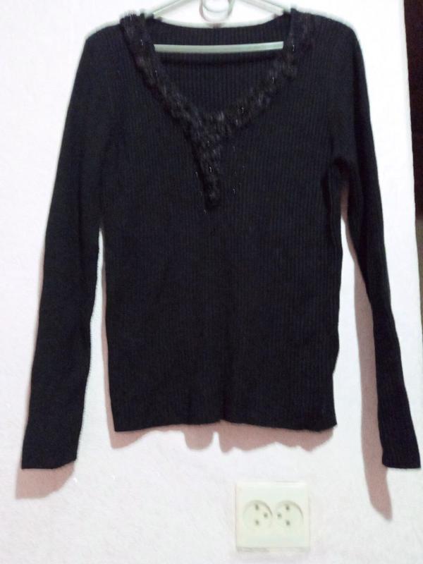 Черный трикотажный джемпер /кофта в рубчик с V вырезом размир M
