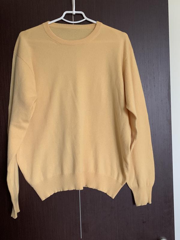 Классический базовый свитер-джемпер из кашемира красивого желтого цвета. Мягкий плотный теплый. Этакики отодвига Е пара маленьких нюансов (фото 5)-учли в цине НОГ 60 НОС 58 Длина рукава 61 Ширина плечей 50 Длина 65 ● Обмену и возврату нет, перед заказом проверяйте все замеры. По запросу делаем дополнительные фото. ● Оплата на карту Приватбанка 100% суми. Наложенного платежа нет. С Безопасной оплатой НЕ РАБОТАЮЩИМ. ● Отсылка Новой или Укр-почтой.
