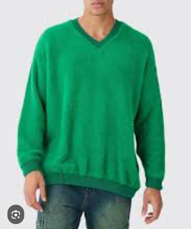 Пушистый контрастный джемпер свободного кроя с v-образным вырезом травка от boohooman