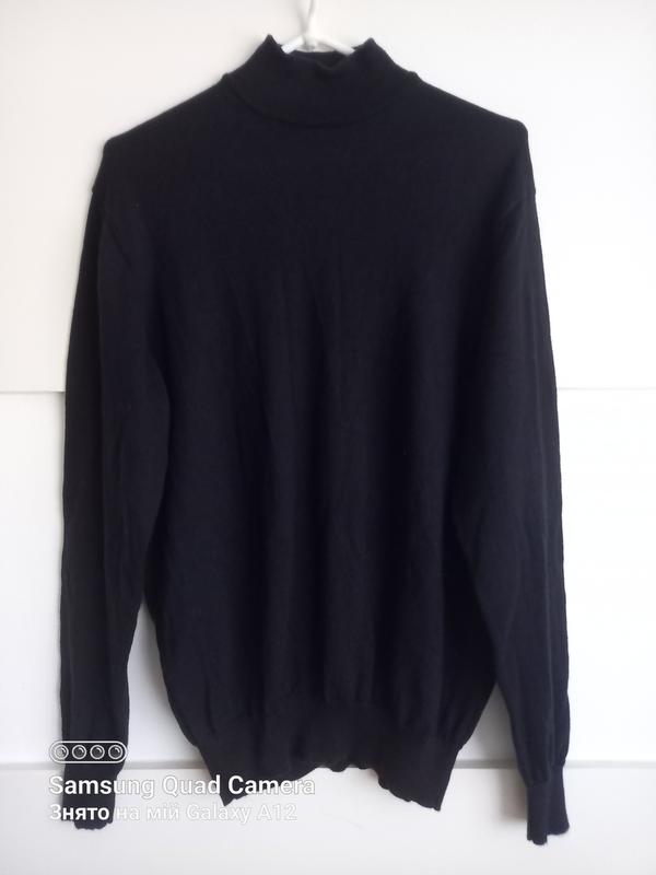 Шерстяной мужской джемпер 100% шерсть темно-синего цвета близко к черному