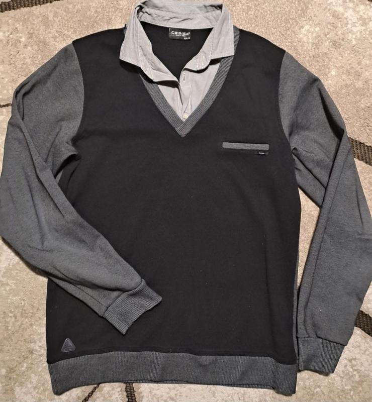 Классический джемпер(обманка) для подростка черного цвета в сочетании с серым,стан идеален и опрятен. Качественный турецкий материал,хорошо держит форму, износостойкий, Ог:92см. Длина джемпера:64см.
