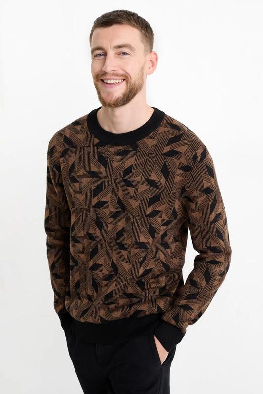 П... М'який в'язаний джемпер з геометричним візерунком по всій поверхні. Ребристі краї. арт 2227642