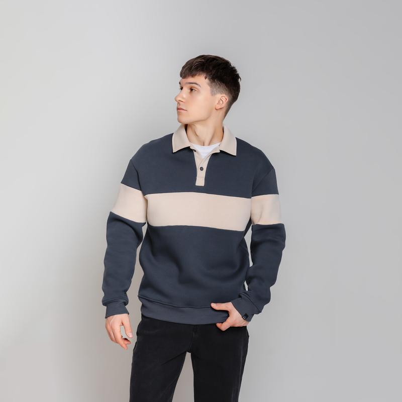 ❗️❗️❗️Перед оформлением заказ уточняйте, пожалуйста, наличие вашего размера. Срок отправки 1-5 дней Новой или Укр-почтой. По безопасной оплате — только новой почтой. Вдалих покупок❤️ Джемпер Pobedov Dual с воротником Материал: трехнитка начес (состав ткани 80% cotton, 15% polyester, 5% elastan). Цвета: темно-серый-молочный, черно-молочный, шоколадно-черный Размеры: S M L XL XXL ▫️Свободный крой. ▫️Отложной воротник поло с планкой на пуговицах. ▫️Контрастная горизонтальная вставка другого цвета по линии груди и рукавов. ▫️Манжеты рукавов и нижний край изделия из трикотажной резинки