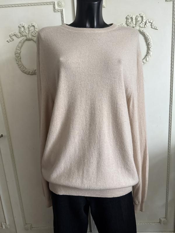 Колі:світло-бежевий. Склад:кашемір-100/. Розмір по бірці-54. Заміри: довжина-76 см, ПОГ-57 см, ПОБ-46 см, рукав-73 см. Кашемір найвищої якості. Нажаль, є нюанс:плямочка на животі, і по спинці зашита охайно дирочка від бірки(див. 2 останні фото).