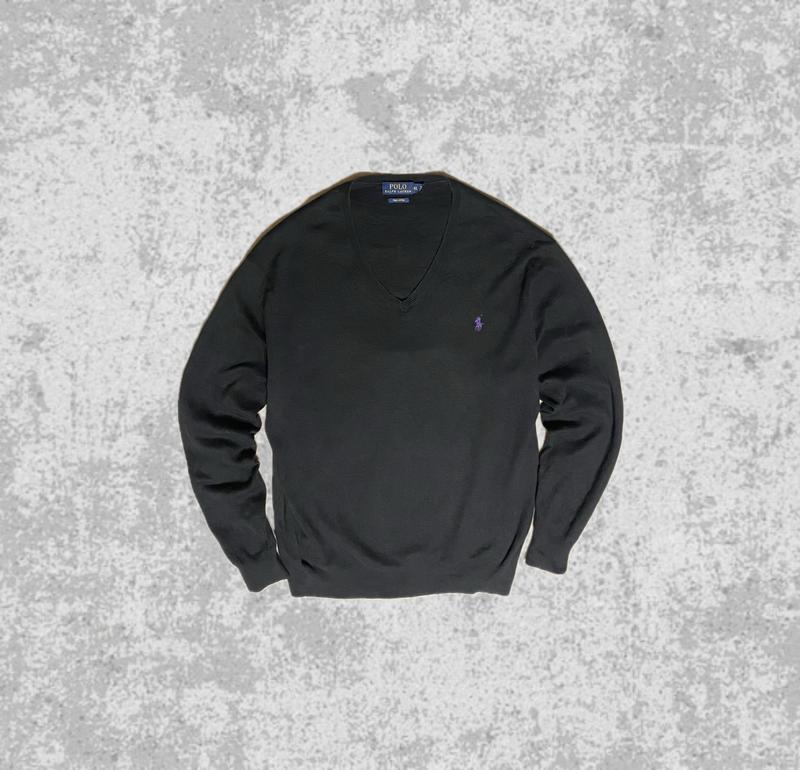 Стан: Вживаний (дуже хороший) Розмір: XL Колір: Чорний з фіолетовим логотипом Опис: Класичний тонкий джемпер від преміального бренду Polo Ralph Lauren. Виконаний з високоякісної бавовни Pima Cotton, яка відома своєю м'якістю, довговічністю та легким шовковистим блиском. • Матеріал: 100% бавовна (Pima Cotton). • Особливості: Елегантний V-подібний виріз, фірмова вишивка поні фіолетового кольору на грудях. • Деталі: Оригінальний виріб, усі внутрішні бірки з кодами та інформацією про виробника збережені. • Крій: Класичний, манжети на рукавах та внизу виробу тримають форму. Ідеальний базовий елемент гардероба, який підходить як під сорочку, так і під футболку.