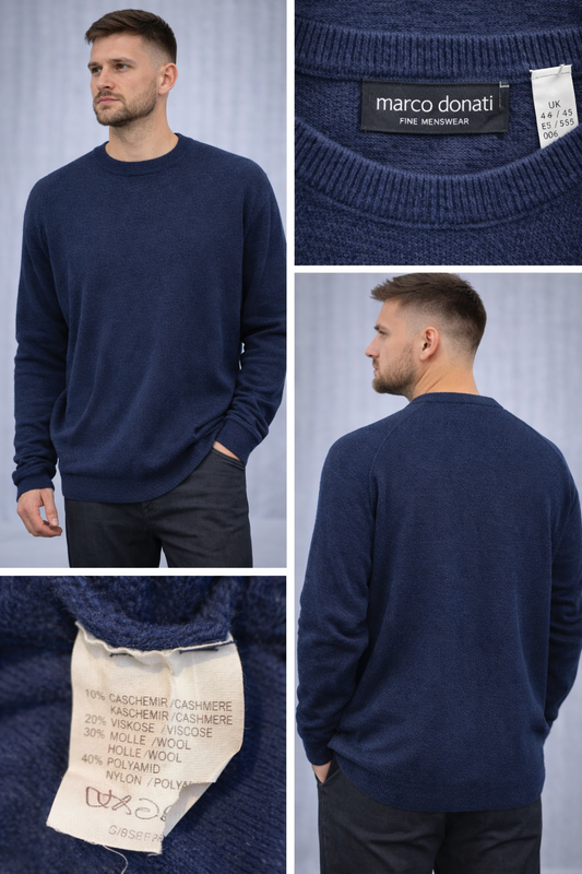 🔹 Мужской джемпер Marco Donati - премиальный итальянский стиль 🔹 Мужской джемпер от бренда Marco Donati – сочетание классики, комфорта и итальянского качества. Джемпер имеет классический прямой крой, аккуратный круглый вырез горловины и длинные рукава. ✨ О бренде Marco Donati — итальянский бренд, известный своим вниманием к деталям, качественным материалам и вневременному дизайну. Одежда этого бренда создана для мужчин, которые ценят комфорт, сдержанную элегантность и долговечность вещей. Изделия Marco Donati отличаются качественным трикотажем, аккуратным пошивом и практичностью в ежедневной носке. 🧶 Материал и комфорт Трикотаж мягкий, приятный к телу, хорошо держит форму и не смотрится “усталым”. Благодаря продуманному составу джемпер: хорошо сохраняет тепло не слишком тяжелый комфортен для осенне-зимнего сезона и межсезонья Состав ткани: 40% полиамид 30% вовна 20% вискоза 10% кашемир Сочетание шерсти и кашемира добавляет тепла и мягкости, а вискоза и полиамид отвечают за износостойкость и стабильную форму. 📐 Размер и замеры Ориентировочно подойдет на L–XL (рекомендуется ориентироваться на замеры). 📏 Замеры в спокойном состоянии: Длина по спинке – ~74 см Полуобхват груди — ~60 см Полуобхват низа - ~52 см Ширина плечей — ~55 см Длина рукава - ~67 см 📌 Состояние: присутствуют следы ношения ВАЖЛИВО ! Безопасная оплата только на Укрпочту и Meest