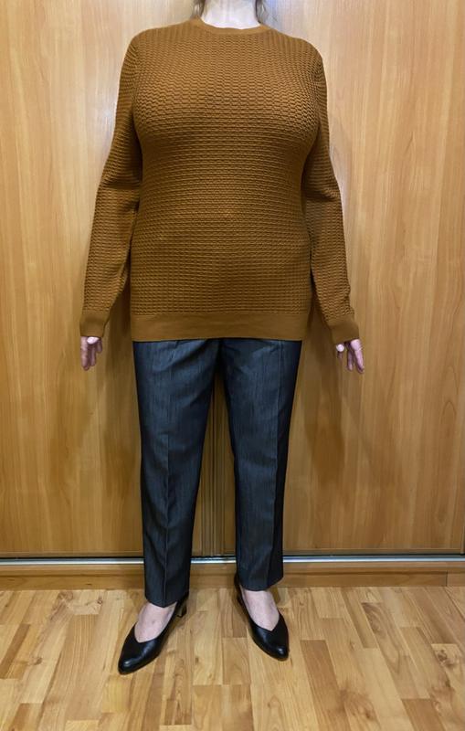 джемпер — якісна базова річ від відомого шведського бренду COS. Джемпер чоловічий, але може носити і жінка. Бренд COS відомий своїм стилем унісекс та мінімалізмом. Сьогодні такі джемпери часто купують жінки як модель oversize. На жінці він виглядатиме як дуже об'ємний, затишний светр "з чоловічого плеча". • Склад: 100% вовна (Wool). Це чудовий показник, адже вовна добре зберігає тепло, «дихає». • Колір: Насичений гірчичний або «палена охра». Це теплий, осінній відтінок, який добре поєднується з темно-синім, сірим, коричневим або класичним денімом. • Текстура: Джемпер має цікаву структурну в'язку (схожа на «вафельну» або дрібний геометричний візерунок). Це додає візуальної глибини та робить річ цікавішою за звичайний гладкий трикотаж. • Розмір: XL (згідно з біркою, на зріст приблизно 185 см). . Розмірна сітка на бірці: На фото видно напис CN 185/116A. У брендів групи H&M (куди входить COS) маркування 185 (зріст) та 116 (обхват грудей) відповідає саме чоловічому розміру XL. Жіночий XL зазвичай маркується на менший зріст (наприклад, 175). Крій та фасон: Це класичний "crew neck" (кругла горловина) прямого силуету. Він має характерну для чоловічих моделей широку лінію плечей та прямий крій тулуба без приталеності. Дизайн: Структурна "вафельна" в'язка та стриманий дизайн горловини і манжетів є типовими для чоловічих колекцій трикотажу COS. Я приміряю на розмір 18(44)165 см і по мені досить щільно, я б радила на менший розмір. Вʼязка дуже пружня і погано тягнеться, тобто повертається в первинний стан, а не провисає. Дивіться заміри і замовляйте безпечну оплату. Заміри: НОГрудей 55 см Резинка по низу 49 см в спокійному стані Довжина по спинці 69 см Рукав 66 см Ширина рукава по біцепсу 18 см Плече 15 см