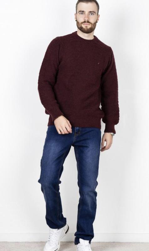 Теплый мужской свитер бордового цвета, классический дизайн с небольшим нагрудным карманом и серыми акцентами на манжетах и горловине. Изготовлен из шерсти100%, что сохраняет тепло и комфорт Замеры на фото