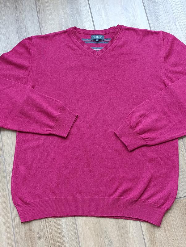 Мужской джемпер фирмы SERGIO в идеальном состоянии ( состояние новой вещи). Цвет малиновый. Ткань Полиакрил 40% Шерсть 30% Котон 30%. Размер по этикетке М схема замеров на последнем фото просьба просматривать замеры перед н