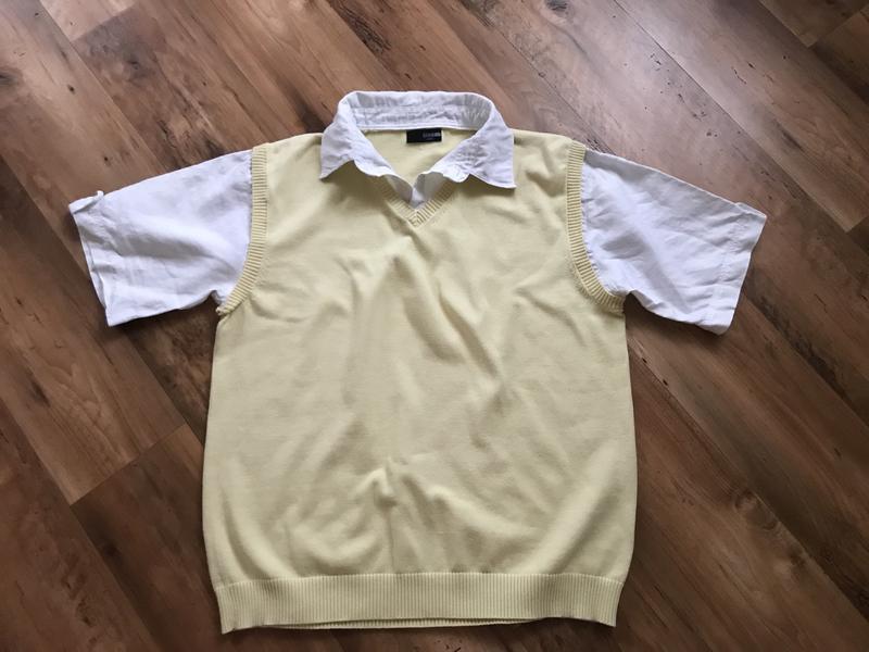 Джемпер фирменный отличного качества 2 в 1 , длина 66 см, ширина по груди 56 см, ширина плеч 50 см, рубашка лён, джемпер котон, смотрится супер