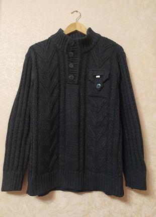 Товста рисунок в'язка. Кишеню на грудях, планка на гудзиках. Розмір вказано - XL. ПОгруди-59см, ПОниза-54см(гумка), Довжина рукава від горловини-74см, Довжина 70см, Ширина спини від крайніх точок плечей-49см.