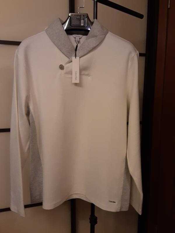 Шикарний чоловічий джемпер від бренду Calvin Klein. Оригінал. Білий з світло-сірими вставками. Новий. З біркою. Купувався в Лондоні в реальному магазині. Розмір XL Трикотаж цікавого плетіння (в рубчик). Склад тканини - 100% бавовна. Заміри: Напів обхват грудей - 62 см Довжина по спинці - 73 см Довжина рукава від плеча - 67 см Довжина плеча - 15 см Висилаю за передоплатою Новою поштою або Безпечна доставка.