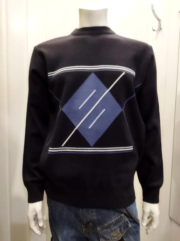 Класичний светр. STROKERS Виготовлений з 50% вовни і 50% поліестеру Одяг виконаний з пряжі престижної колекції. Низ одягу і рукава знаходяться на манжеті. З геометричним візерунком спереду виглядає дуже стильно. Розміри: M/50; Xl/54; 2Xl/56 Заміри за бажанням замовника!