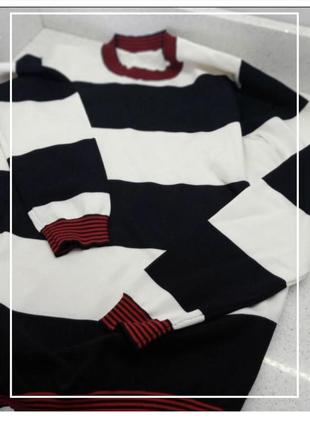 ИНФОРМАЦИЯ О ТОВАРЕ Цвет: черный,белый,красный. Декор: узор в полоску, патч-лого Размер на модели (рост 176 см): М Размерность модели: размер соответствует указанному КРОЙ И ФАСОН Длина изделия по среднему шву спинки от горловины: 65см Вырез: круглый Рукав длинный: 61 см Плечи: 40 см Без торга!