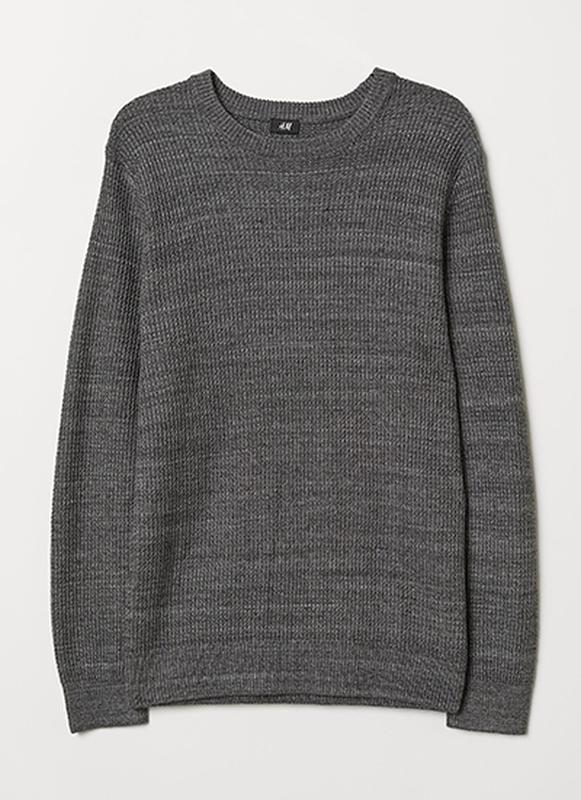 джемпер от бренда H&M разм. М № ********** Мерки: плечи 45см, пог 52см, длина 62см, рукав 63см Джемпер текстурной вязки из мягкого смесового хлопка с длинными рукавами. Обвязка резинкой горловины, низа рукавов и нижнего края. Цвет: темно-серый меланж Состав: 55% акрил, 45% хлопок В наличии размеры: М