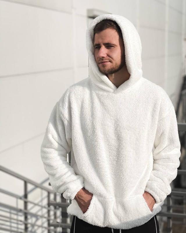 Арт: U00601 ✔️ Матеріал: Махра ✔️ Колір: білий ✔️ Розмір: S(S-M), L(L-XL) Опис: Низ на затяжці із фіксатором. Кенгуру кишеню. Подвійний великий каптур. Низ рукава на резинці.