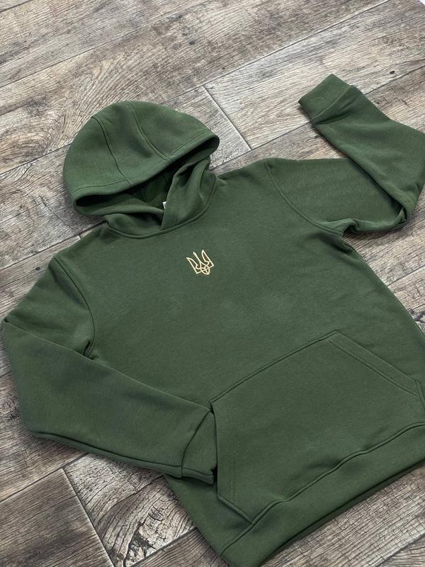 🔴Новинка🔴 ‼️Мужское утепленное худи с вышитым трезубом!️ ▪️Материал: трикотаж на байке ▪️Состав: 85% хлопок, 15% полиэстер ▪️Размеры: S M L XL XXL ▪️Лого: Вышивка (золотой трезуб вышит металлизированной нитью) (Made in Ukraine🇺🇦) ▪️Цвета: черный, хаки, молоко