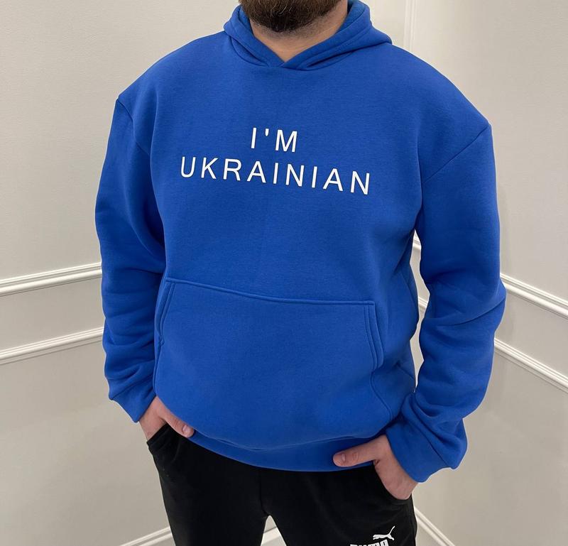 Р. ▪️ Худи мужской на флисе «I’’m Ukrainian Турция»# 255 Цена - 550 грн Размер - 48-50 Ткань - трехнить Турция высокого качества Цвет - электрик Качественный патриотический мужской худи с капюшоном и накладным карманом. Плотная ткань с высокой теплоизоляцией. Турецкая трехнить обладает высокой прочностью и износостойкостью. «Тримает форму», не извлекается, не скатывается, не вызывает аллергии.