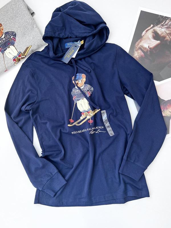 Худі, лонгслів чоловічий Polo Ralph Lauren Колір :синій ( медведик ) Розмір : S, XL Тонкий трикотаж . Склад тканини : 100% бавовна. Замір S: Пог 51, довжина 70, плечі 45, рукав 62/47 см Замір XL: Пог 54, довжина 80, плечі 52, рукав 71/52 см