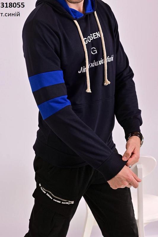 Чоловічий батник (тр-318055) Країна виробник: Китай Якість відмінна. Спереду кишеня-кенгуру. Тканина двунитка. Склад: 65% бавовна, 35% поліестер Колір т.синій з синіми вставками. Розміри в наявності: М, ХЛ Мірки є на фото